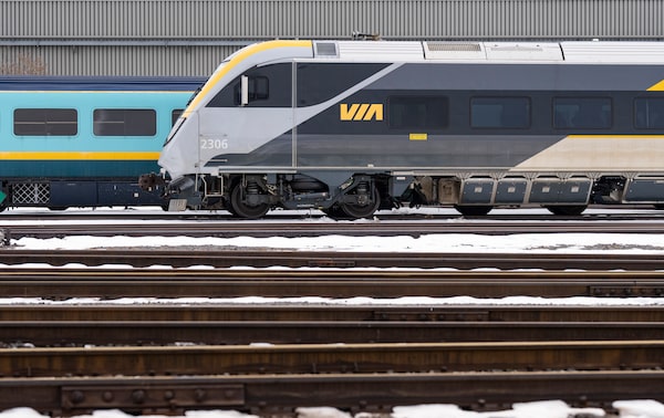 Trains sit on the tracks at the Via Rail Canada Maintenance Centre in Montreal, on Feb. 22.Christinne Muschi/The Canadian Press