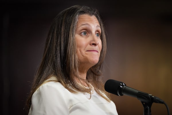Deputy Prime Minister and Finance Minister Chrystia Freeland pauses while responding to questions during the second day of a Liberal cabinet retreat, in Vancouver, on Sept. 7.DARRYL DYCK/The Canadian Press