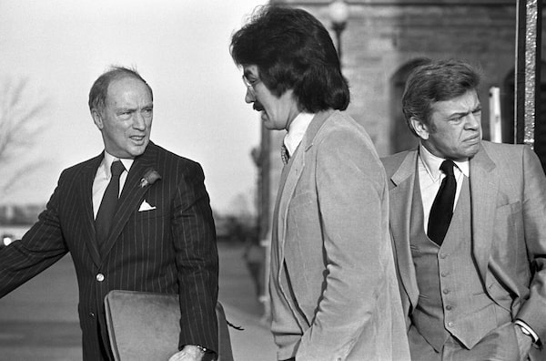 Peter Ittinuar, centre, walks with Prime Minister Pierre Trudeau and Indian Affairs Minister John Munro to a Liberal caucus meeting in December, 1982.Peter Bregg/The Canadian Press