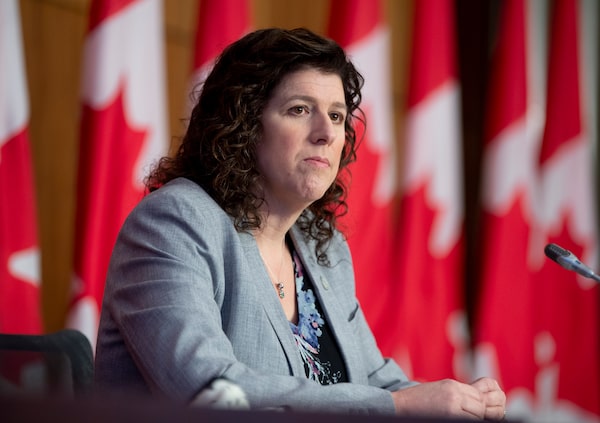 Auditor General Karen Hogan during a news conference following the tabling of reports in Ottawa on March 25, 2021.Adrian Wyld/The Canadian Press