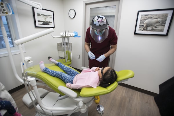 Dr. Hamza Jafri, a dentist in Rankin Inlet, Nunavut, takes care of five-year-old Piujulia Taylor’s teeth in October, 2022.Fred Lum/the Globe and Mail
