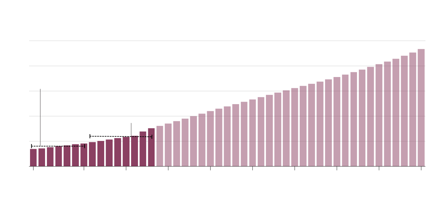 Note: Amounts for 2007-08 until 2022-23 are actuals, as available. Amount for 2023-24 is an estimate, and subject to change. Amounts are on a cash basis. Amounts include Canada Mortgage and Housing Corporation (CMHC) programming only, and do not include: homelessness programming; energy efficiency programs delivered through Natural Resources Canada; tax measures; cost-matching provided by provinces and territories; or investments that support distinctions-based Indigenous housing strategies.