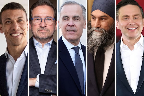Green Party of Canada co-leader Jonathan Pedneault, Bloc Québécois leader Yves-François Blanchet, Liberal Leader and Prime Minister Mark Carney, New Democratic Party leader Jagmeet Singh and Conservative Party of Canada Leader Pierre Poilievre.Evan Buhler/Reuters, Adrian Wyld/The Canadian Press, Dave Chan/AFP via Getty Images, Gino Donato/The Canadian Press/Supplied