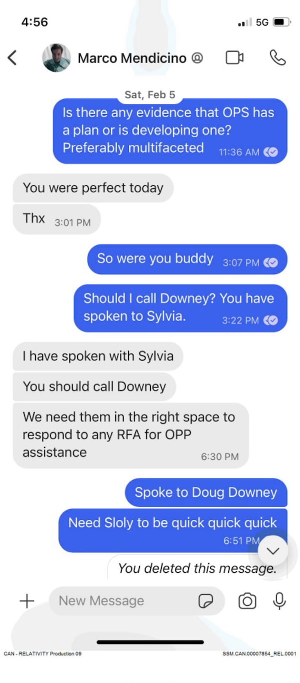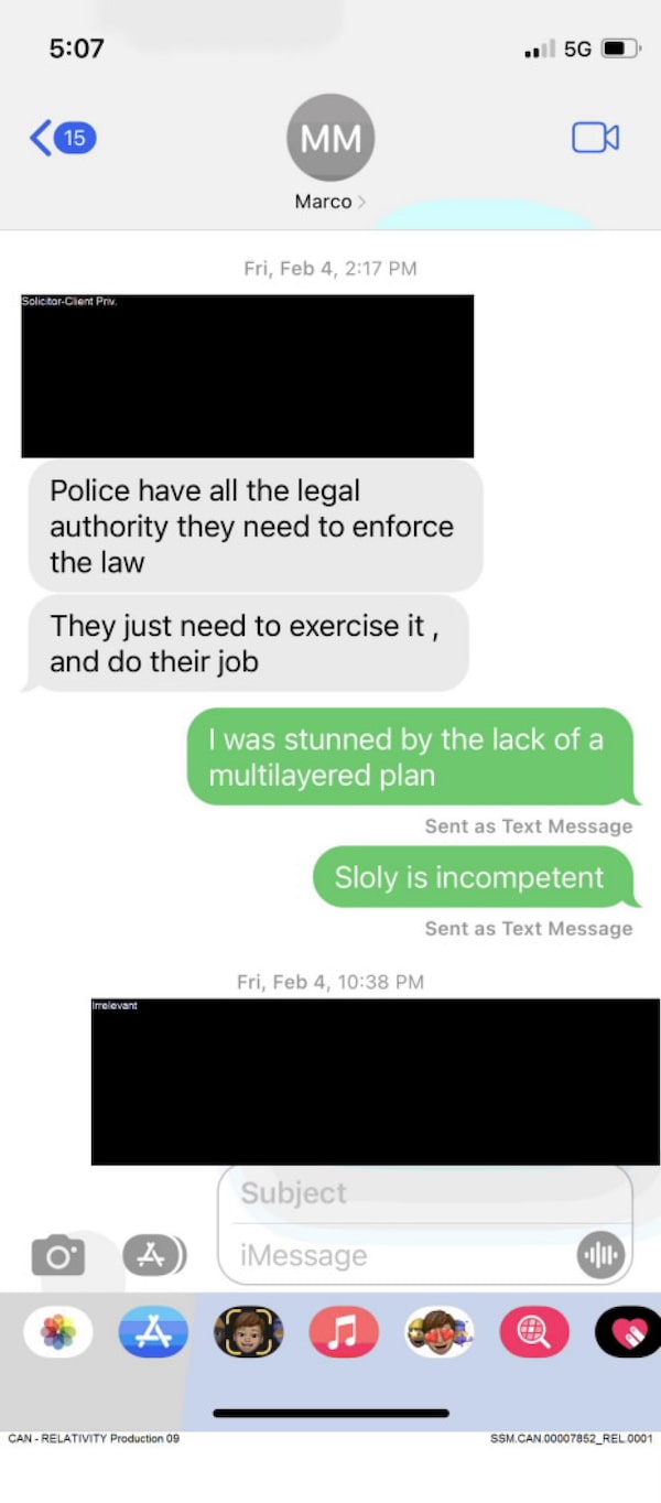 As he planned to advise the government on its decision, he was also taking umbrage with then Ottawa police chief Peter Sloly. On Feb. 4, he told Mr. Mendicino in a text that Mr. Sloly was “incompetent” and he was “stunned” at the lack of a multilayered plan. Mr. Sloly resigned on Feb. 15.