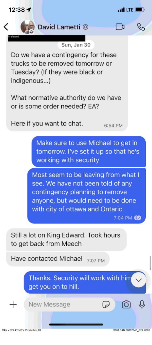 Text messages tabled at the inquiry show Mr. Lametti, who also serves as justice minister, was heavily involved behind the scenes. He repeatedly asked about the status of police plans, was highly critical of the Ottawa police, and advocated for stronger enforcement. His comments prompted repeated questions from inquiry lawyers about the line between politicians and police.