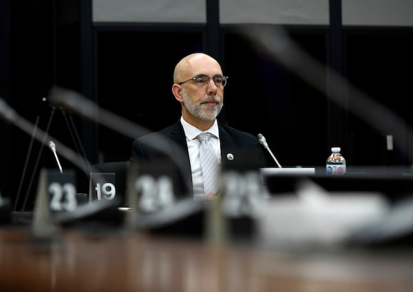 Parliamentary Budget Officer Yves Giroux prepares to appear before the Senate Committee on Official Languages, in Ottawa, on June 13, 2022.Justin Tang/The Canadian Press