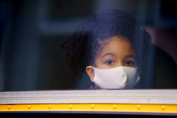 A masked student peers through the window of a school bus as she arrives at a Montreal elementary school on Aug. 27.Paul Chiasson/The Canadian Press/The Canadian Press