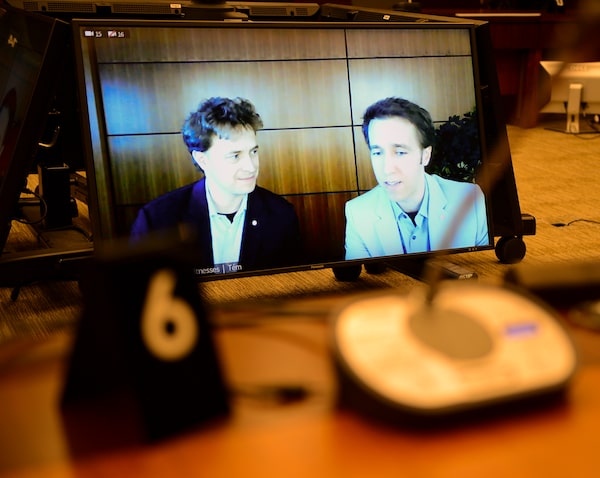 Marc and Craig Kielburger appear as witnesses via videoconference at a House finance committee hearing on July 28.Sean Kilpatrick/The Canadian Press/The Canadian Press