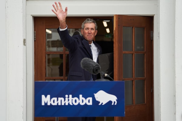 Manitoba Premier Brian Pallister announces that he will not be seeking re-election in front of the Dome Building in Brandon, Man., on Aug. 10, 2021.David Lipnowski/The Canadian Press