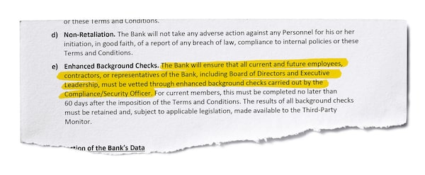 “This includes prohibiting the named individuals from holding formal or informal positions within the bank such as employee, director, contractors, consultants,” Ms. Freeland’s orders say. The three shareholders are also prohibited from providing goods or services to the bank “including funding, marketing, supplies, corporate services, leasing of office space, etc.”