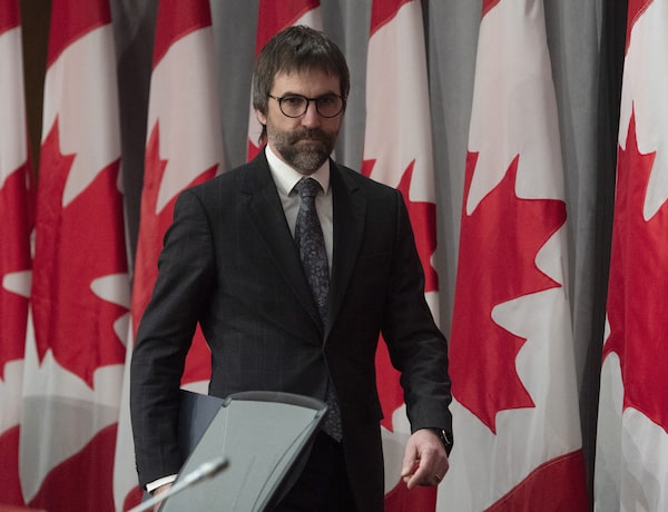 Minister of Canadian Heritage Steven Guilbeault makes his way to his seat for a news conference in Ottawa, April 17, 2020.Adrian Wyld/The Canadian Press