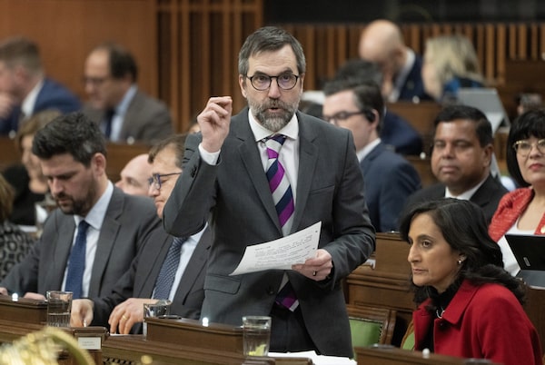 Minister of Environment and Climate Change Steven Guilbeault rises during question period, in Ottawa on Feb. 26.Adrian Wyld/The Canadian Press