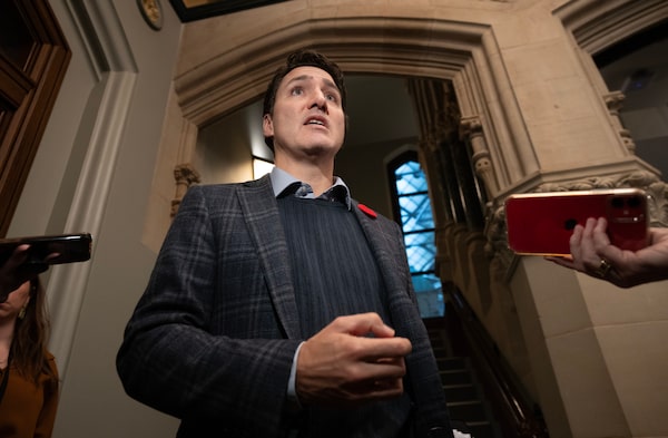 Prime Minister Justin Trudeau speaks with reporters as he makes his way to caucus in Ottawa, on Nov. 1.Adrian Wyld/The Canadian Press