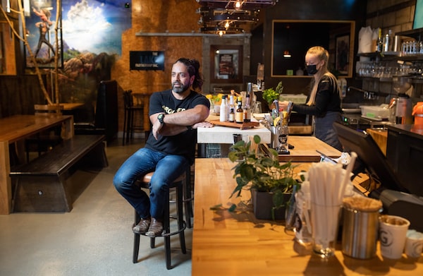 Amir Rahim, owner of Grounded Kitchen, Coffee and Bar in Ottawa, sits in his restaurant on Nov. 25, 2021.Justin Tang/The Globe and Mail
