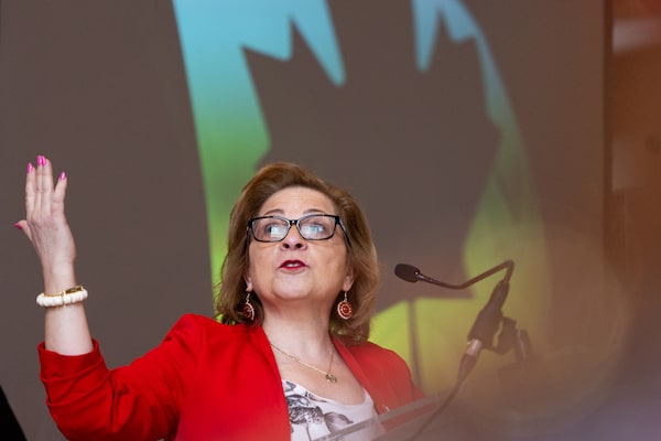 Immigration, Refugees and Citizenship Minister Lena Metlege Diab speaks during an event welcoming Canada's newest citizens at the Maritime Museum of the Atlantic in Halifax on Friday.Riley Smith/The Canadian Press