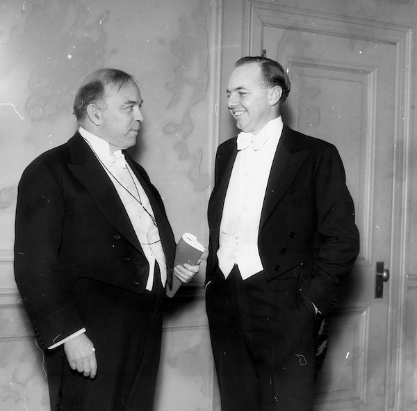 Mackenzie King and Mitchell Hepburn attend a Liberal party banquet in 1932. King was wary of the populist Ontario premier, whom he saw as a puppet of McCullagh.John H. Boyd/The Globe and Mail