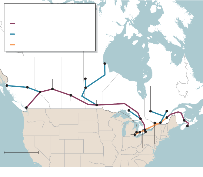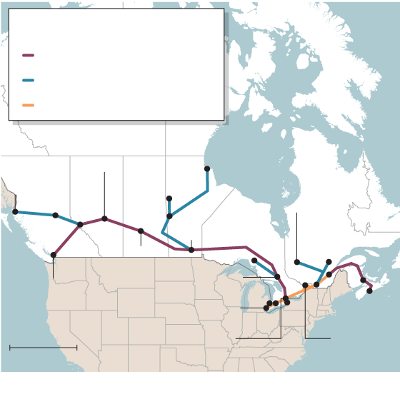 THE GLOBE AND MAIL, SOURCE: VIA RAIL; NATURAL EARTH; NATURAL RESOURCES CANADA