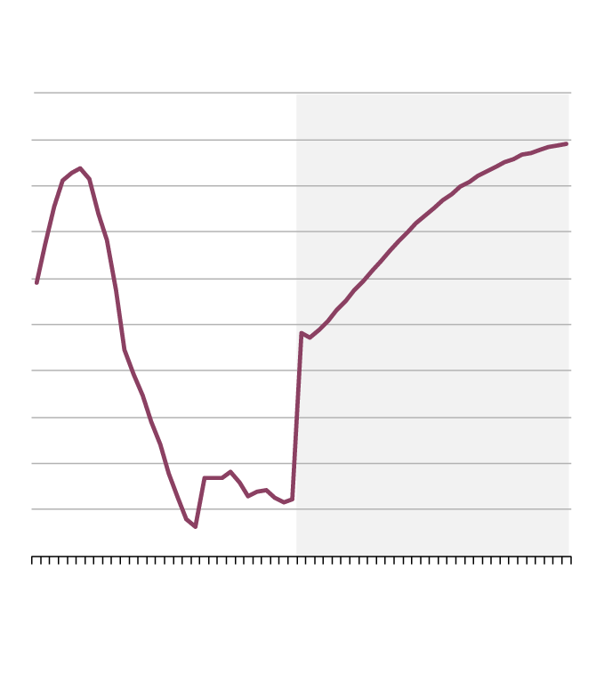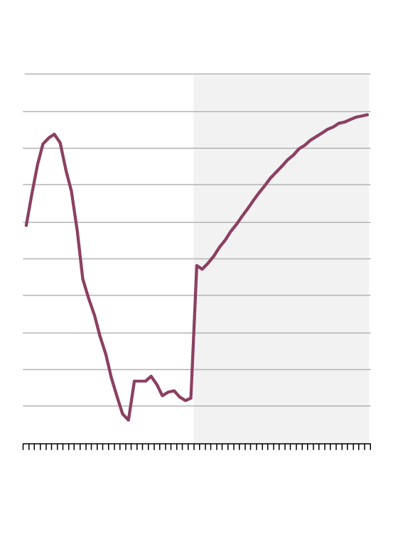 As debt piles up, by 2050 the federal debt-to-GDP ratio will have reached almost 70 per cent, it forecasts, higher than at any time since the years after the Second World War, and higher than it was in the 1990s, when the Jean Chrétien government launched its austerity drive.
