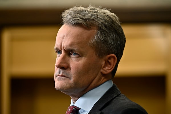 Minister of Labour Seamus O'Regan listens to a question from a reporter in the in the Foyer of the House of Commons on Parliament Hill in Ottawa, on Oct. 19.Justin Tang/The Canadian Press