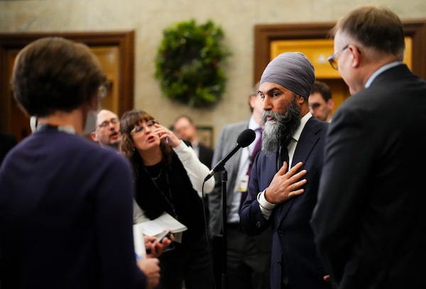 NDP Leader Jagmeet Singh speaks to reporters in the foyer of the House of Commons on Parliament Hill in Ottawa on Nov. 27.Sean Kilpatrick/The Canadian Press