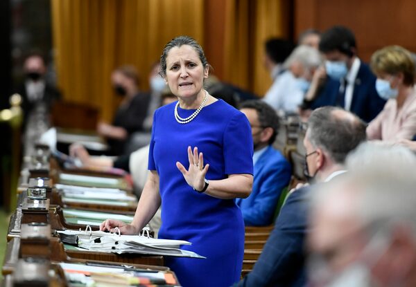 Deputy Prime Minister and Minister of Finance Chrystia Freeland rises during Question Period in the House of Commons on Parliament Hill in Ottawa on June 9, 2022.Justin Tang/The Canadian Press