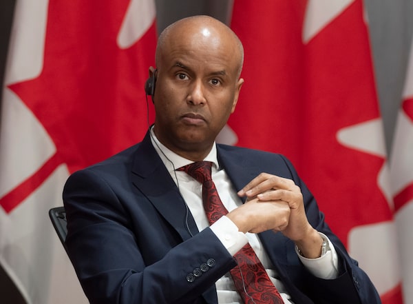 Families, Children and Social Development Minister Ahmed Hussen listens to a question during a news conference in Ottawa, on April 21, 2020.Adrian Wyld/The Canadian Press