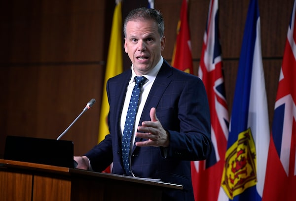 Government House Leader Mark Holland announces plans to preserve some 'hybrid Parliament' privileges on Parliament Hill in Ottawa on June 20, 2022.Justin Tang/The Canadian Press