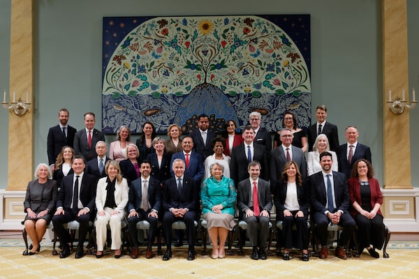 Canada's Prime Minister Mark Carney and Governor General Mary Simon pose for a family photo with newly sworn in cabinet members, at Rideau Hall, in Ottawa on May 13, 2025.Blair Gable/Reuters
