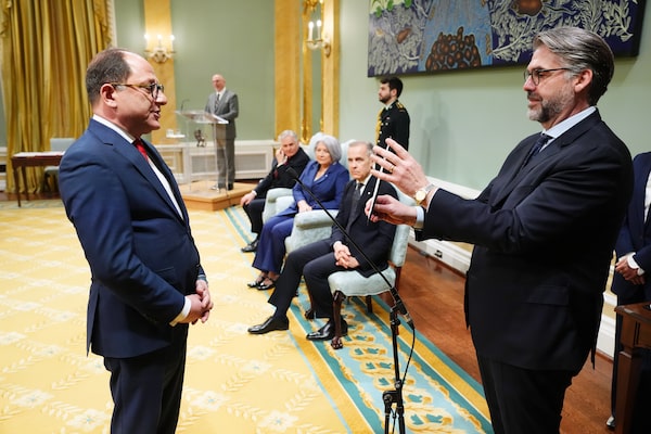 Ali Ehsassi is sworn in as the Minister of Government Transformation, Public Services and Procurement during a swearing in ceremony at Rideau Hall.Sean Kilpatrick/The Canadian Press