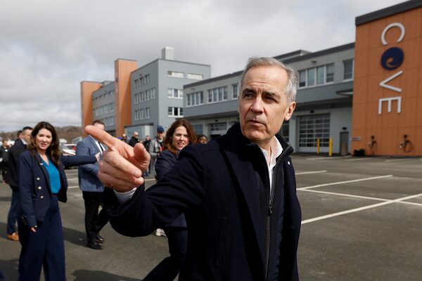 Prime Minister Mark Carney visits the Centre for Ocean Ventures and Entrepreneurship (COVE) on the third day of his Liberal Party election campaign in Dartmouth, Nova Scotia March 25.Blair Gable/Reuters