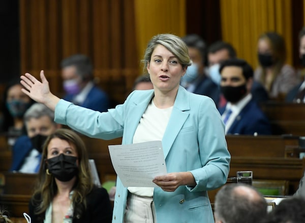 Minister of Foreign Affairs Melanie Joly rises during Question Period in the House of Commons on Parliament Hill in Ottawa on June 13. A spokesperson for the minister said Ms. Joly did not know that Yasemin Heinbecker would be attending a party at the Russian embassy in Ottawa.Justin Tang/The Canadian Press