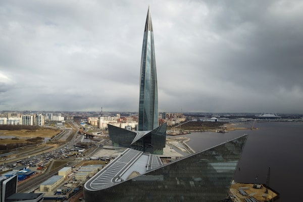 A view of the business tower Lakhta Centre, the headquarters of Russian gas monopoly Gazprom in St. Petersburg, Russia, on April 27, 2022.Dmitri Lovetsky/The Associated Press