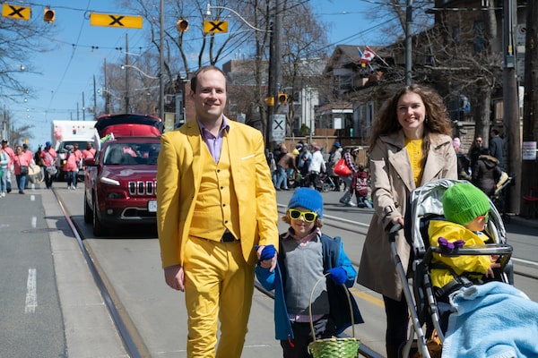 Liberal MP for Beaches-East York Nathaniel Erskine-Smith attends the Easter parade with his family in Toronto's Beaches neighbourhood on April 17, 2022.Galit Rodan/The Globe and Mail