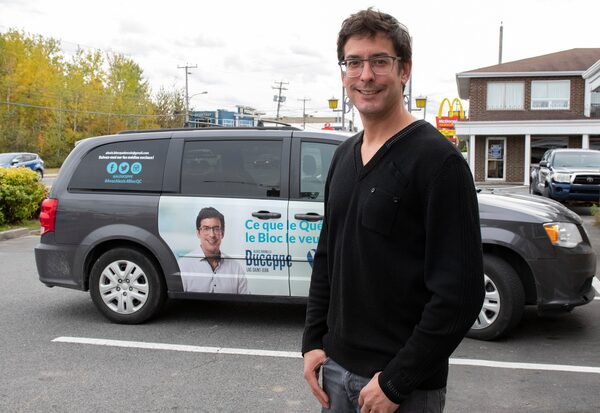 Then-Bloc Québécois candidate Alexis Brunelle-Duceppe stands in front of his campaign van during the October election.Jacques Boissinot/The Canadian Press