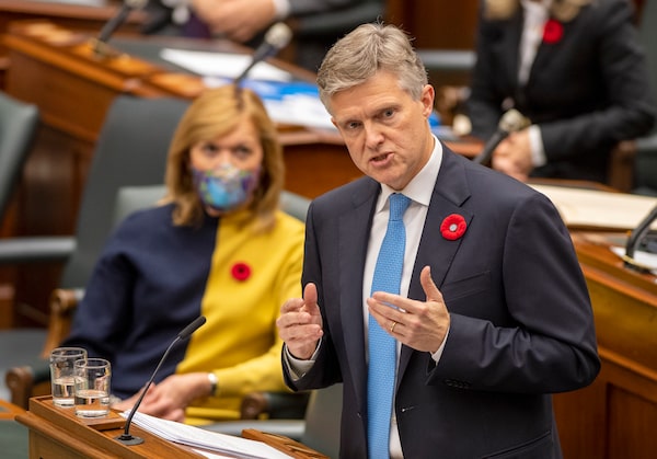 Ontario Finance Minister Rod Phillips delivers the provincial budget at Queen's Park in Toronto on Nov. 5, 2020.Frank Gunn/The Canadian Press
