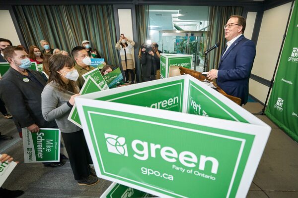 Those inside the Greens’ provincial campaign efforts are quick to echo the belief that Green successes elsewhere in Canada are scalable in Ontario. At a recent candidate mixer in Kitchener, Ont., Schreiner rallied the small crowd by invoking work done by counterparts in B.C., P.E.I., and New Brunswick, and saying his own party is “punching well above our weight” in Ontario’s legislature with himself as the sole representative.