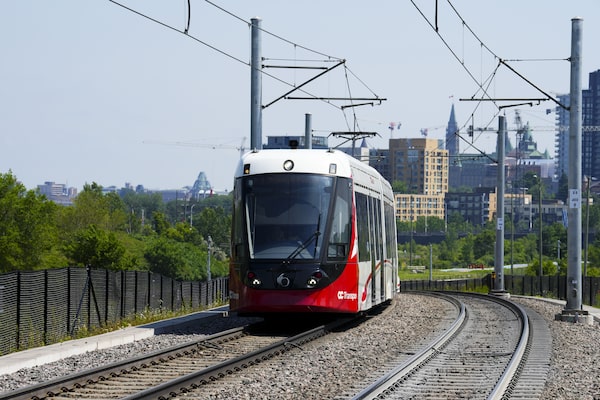 An Ottawa Light Rail Transit (OLRT) train travels along the tracks in Ottawa in June, 2022.Sean Kilpatrick/The Canadian Press