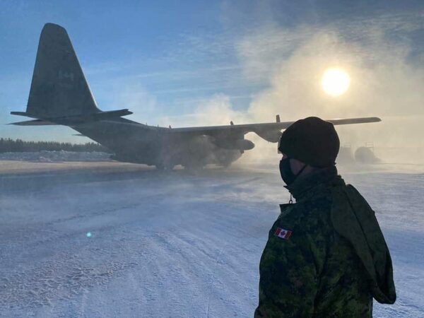 Hercules military aircraft from the Canadian Armed Forces arrived in Shamattawa First Nation Wednesday afternoon to assist with the community's COVID-19 outbreak. .Facebook/Supplied