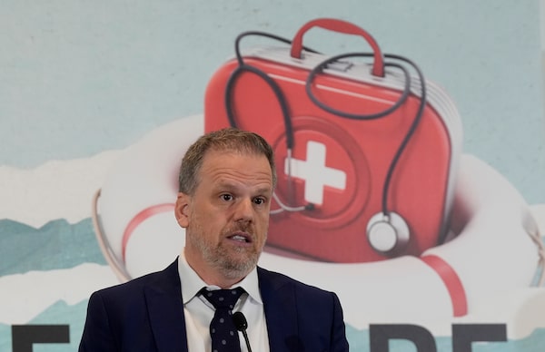 Health Minister Mark Holland speaks at the SOS Medicare conference, in Ottawa, on Feb. 24.Adrian Wyld/The Canadian Press