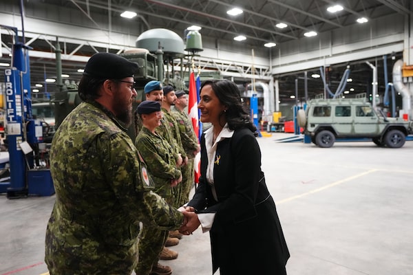 Defence Minister Anita Anand greets Canadian Forces personnel at CFB Kingston on March 7.Sean Kilpatrick