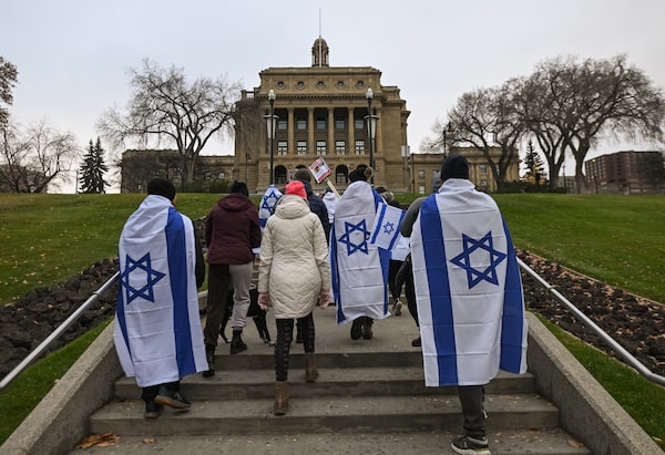 Members of Edmonton's Jewish diaspora during a symbolic 'Walk for Israel' rally at the at the Alberta Legislature grands, in the heart of the city's downtown, on Oct. 22, in Edmonton.Artur Widak/Reuters