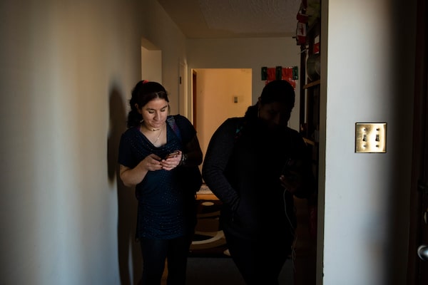 In this October, 2018, file photo, Jihan tries one more time to connect with her youngest sister, Huda , who is now stuck in a camp in Iraq, before she leaves the house in Calgary.Kiana Heyeri/The Globe and Mail