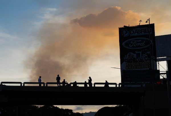 People on a bridge watch as smoke rises near Fort Tiuna, after U.S. President Donald Trump said the U.S. struck Venezuela and captured its President Nicolas Maduro, in Caracas, on Saturday.Leonardo Fernandez Viloria/Reuters