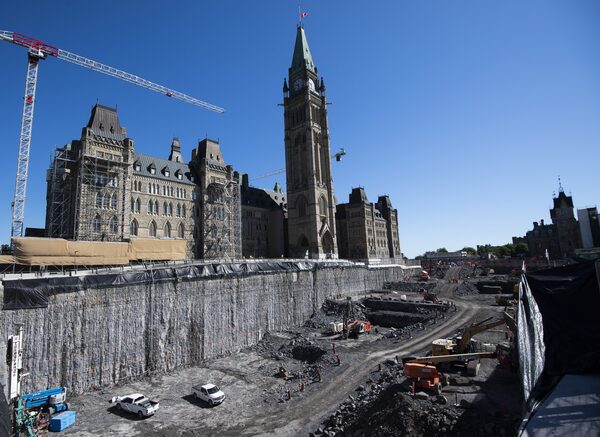 The ground in front of Parliament Hill's Centre Block is excavated for the building of the new welcome centre on June 16, 2021.Justin Tang/The Canadian Press