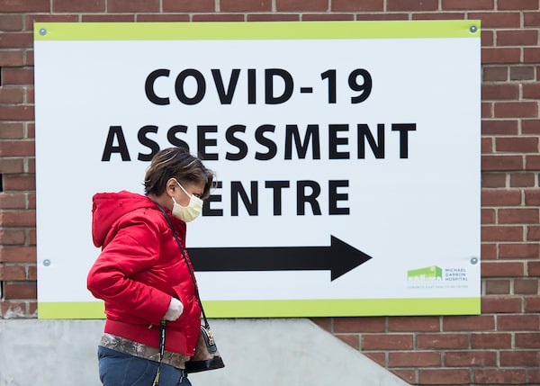 A woman arrives at the COVID-19 assessment centre at the Michael Garron Hospital, in Toronto, on March 24, 2020.Nathan Denette/The Canadian Press