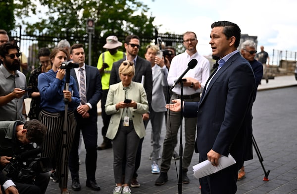 Conservative Leader Pierre Poilievre speaks at a news conference in Ottawa, on Aug. 1.Justin Tang/The Canadian Press