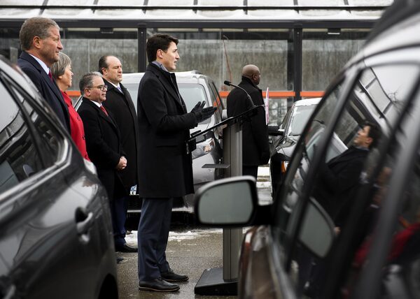 Prime Minister Justin Trudeau speaks to the media at the Go station in Vaughan, Ont., on Feb. 7, 2019.Nathan Denette/The Canadian Press