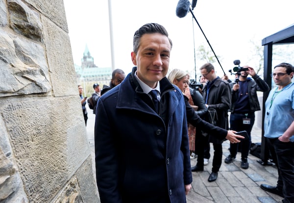Conservative Leader Pierre Poilievre makes his way into West Block on Parliament Hill for a meeting of the Conservative caucus following the federal election, in Ottawa, on May 6.Justin Tang/The Canadian Press