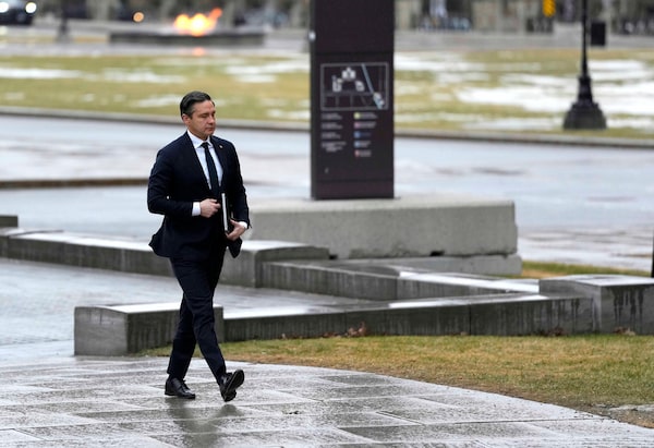 Conservative Leader Pierre Poilievre arrives on Parliament Hill before a meeting of the Conservative caucus on Wednesday.Justin Tang/The Canadian Press