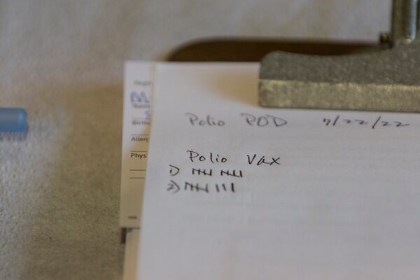 A count kept of polio vaccinations administered at the Rockland County health department, in Pomona, N.Y., on July 22.VICTOR J. BLUE/The New York Times News Service